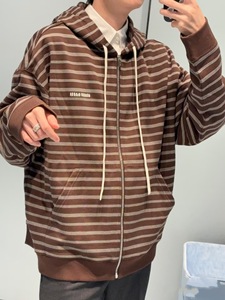 天花板品质255SS潮牌新款MIU风格条纹logo刺绣连帽拉链外套夹克潮