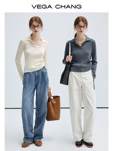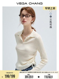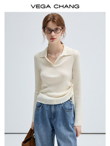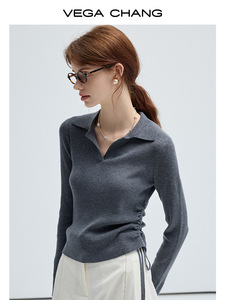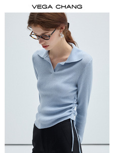 VEGA CHANG针织衫女2025春秋新款显瘦设计感抽绳polo领长袖上衣
