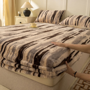 美拉德兔毛绒床笠单件冬季保暖加绒保护套全包围防尘加厚床垫罩