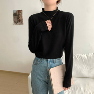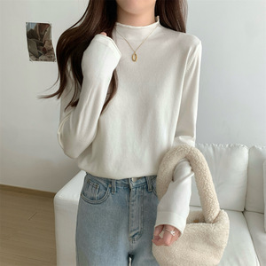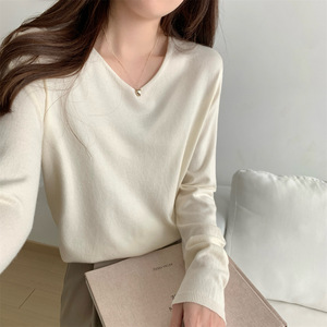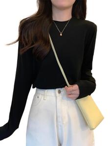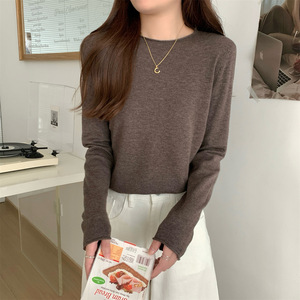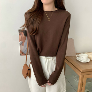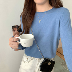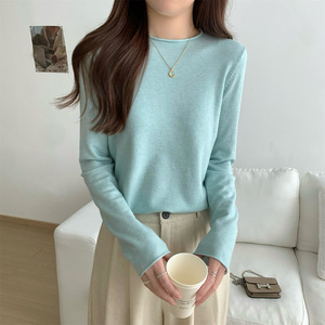 韩版基础款圆领卷边针织衫打底女早秋慵懒风毛衣长袖软糯内搭上衣
