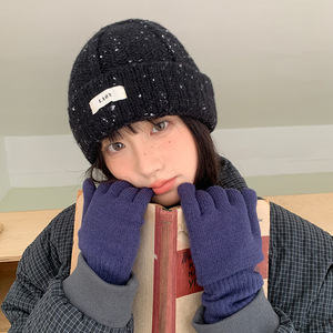 点点纱贴布洋气减龄针织帽秋冬卷边毛线帽韩版贴布休闲百搭毛线帽