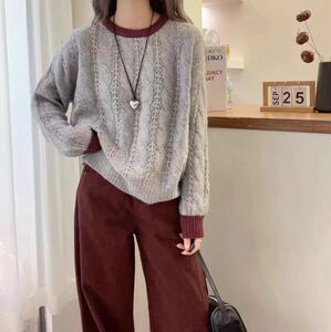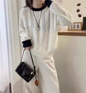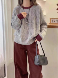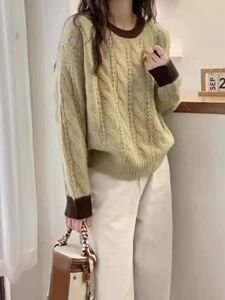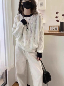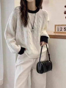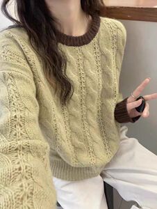 25韩版秋冬新款拼色麻花镂空羊毛衫女欧货麻花羊绒打底毛衣上衣