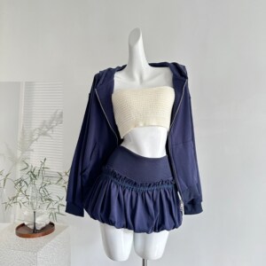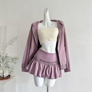 2025实拍 紫色连帽破洞短款卫衣外套小个子花苞短裙套装
