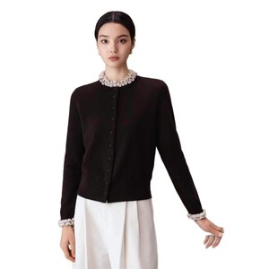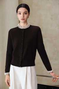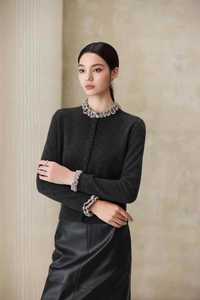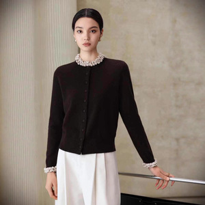 100羊毛2025秋冬圆领针织开衫女宽松显瘦时尚木耳边毛衣外套上衣