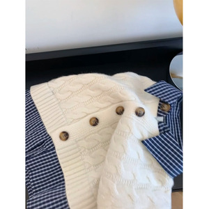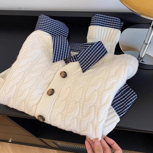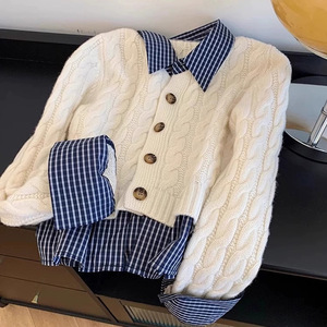 设计感格子拼接Polo领麻花毛衣2025秋冬新款时尚撞色针织开衫外套