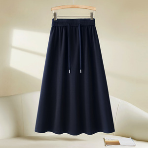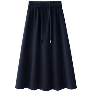 高腰藏青色伞裙半身裙女秋季2025新款垂感百搭休闲卫裙百褶a字裙