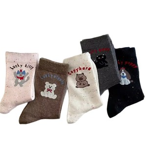 秋季韩版卡通动物运动风学院风森系可爱百搭休闲点子纱中筒袜女袜