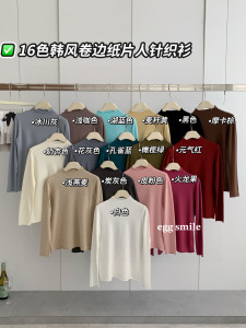 秋冬韩版纯色卷边纸片人针织衫薄款高弹百搭简约修身半高领打底衫