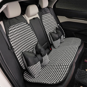 方格小香风拼皮坐垫黑色后排