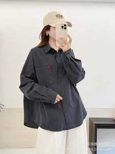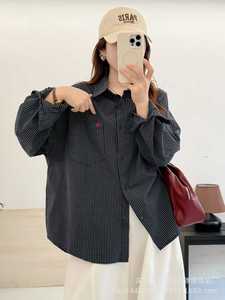琪镌绘制美式复古宽松格纹百搭刺绣翻领衬衫慵懒风叠穿长袖衬衣女