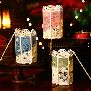中秋节灯笼挂饰手工diy材料包兔子花灯 儿童古风汉服手提宫灯摆摊
