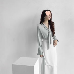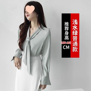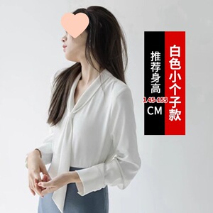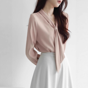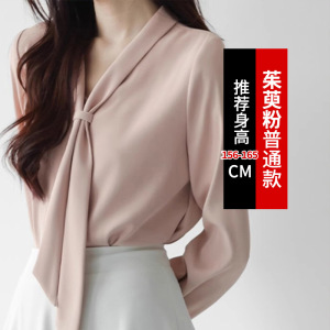 法式飘带衬衫女春秋小个子通勤职业衬衣粉色领气质雪纺上衣
