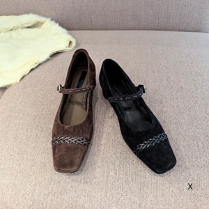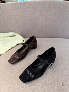 欧洲站XJ女鞋25秋冬时尚一字带软羊猄皮方头浅口玛丽珍粗低跟单鞋