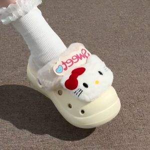 厚底增高可爱卡通凯蒂猫棉拖鞋女2025年冬季加绒加厚舒适包头拖鞋