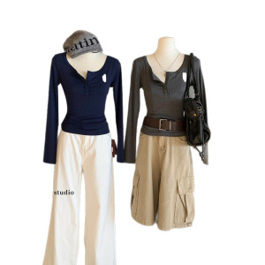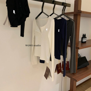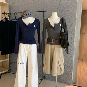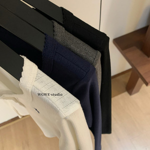 WGWE7144《裸感云朵》小个子刺绣正肩长袖t恤女打底衫内搭上衣