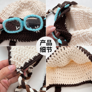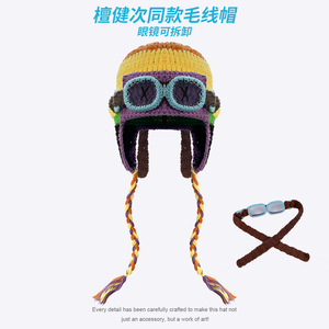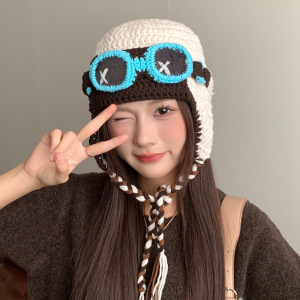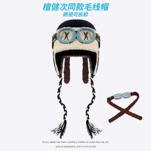 复古飞行员针织帽子户外骑行秋冬保暖护耳帽雷锋帽百搭毛线帽冷帽