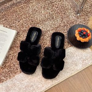 法式厚底毛毛拖鞋女外穿2025新款秋冬季平底毛茸茸慵懒一字棉拖鞋