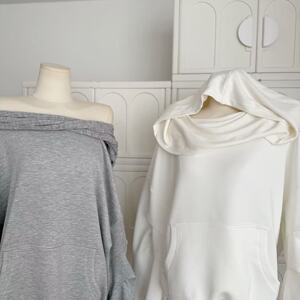 2025实拍秋季新款女式 设计感一字肩/连帽多穿套头卫衣