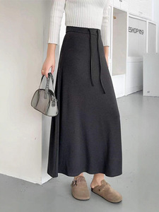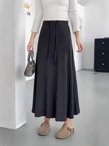 灰色仿羊绒糯糯半身裙女2025早秋冬新款垂感高腰大裙摆长款a字裙