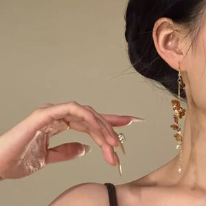 桐月摇梦~秋冬美拉德花朵流苏耳钉女高级感2025新款独特耳环耳饰