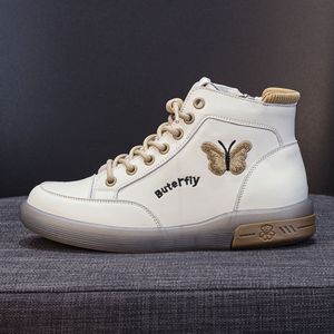 2025新款短靴真皮秋冬蝴蝶高帮女士小白鞋休闲百搭女大码马丁靴女