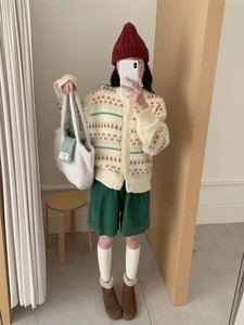 韩系古着感费尔岛提花毛衣开衫外套女秋冬新款慵懒软糯宽松针织衫