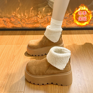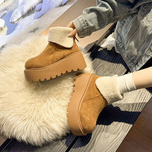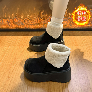 厚底增高雪地靴女2025新款冬季加绒保暖毛毛短靴时尚丑萌大头棉鞋