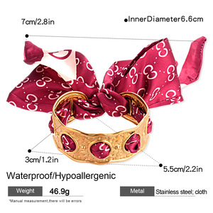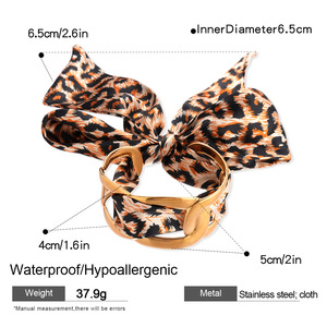 欧美跨境不锈钢豹纹镂空布艺开口手镯时尚个性气质手环时尚手饰女