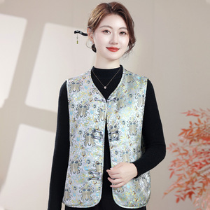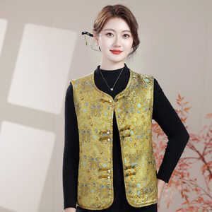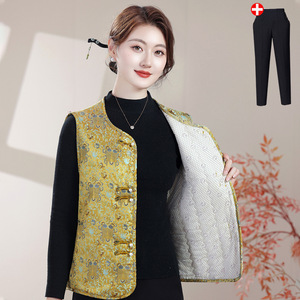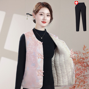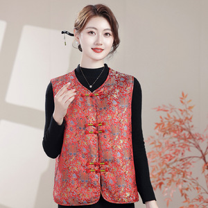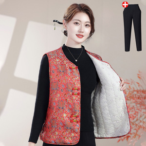 妈妈秋装唐装马甲女中老年人秋冬季夹棉加厚马夹新款国风洋气背心