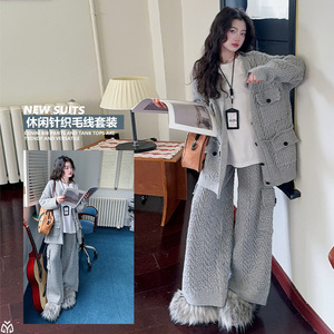女童毛衣套装春秋季2025新款大童韩系阔腿裤轻奢高级感穿搭潮酷