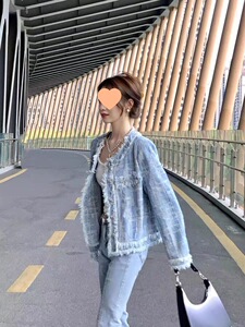 风外套女秋季气质时尚减龄做旧潮流设计感小众OL牛仔外搭