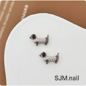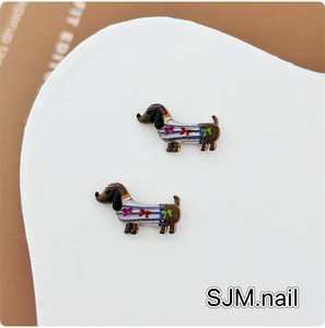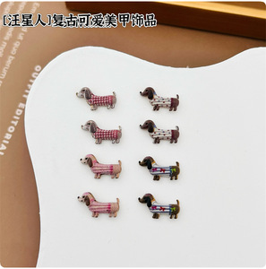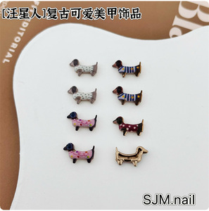 新款斑点条纹格纹腊肠狗合金美甲饰品 趣味卡通金属DIY穿戴甲配饰