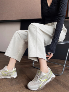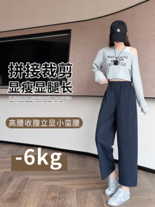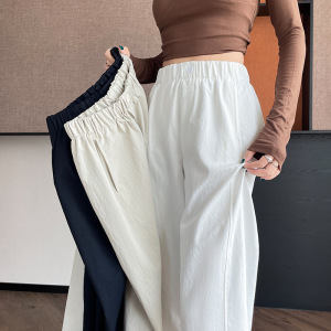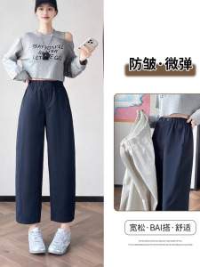 小个子搭配弯刀裤女秋冬松紧高腰很好看藏蓝色九分休闲裤女A7261