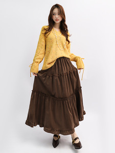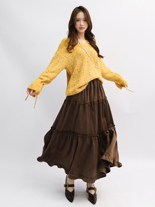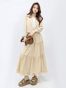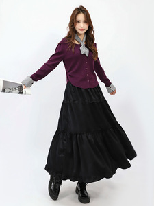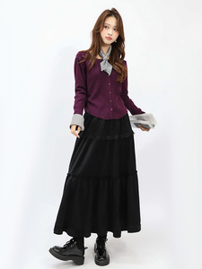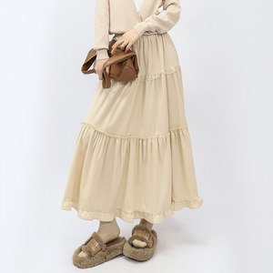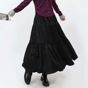 菲媛气质通勤时尚百搭纯色半身裙女 秋冬新款蕾丝花边拼接A字裙