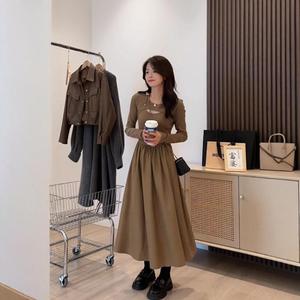 25法式赫本风黑色连衣裙女秋季小个子气质收腰显瘦内搭打底长裙子