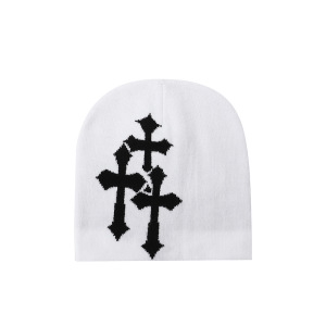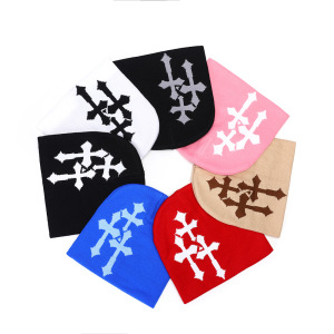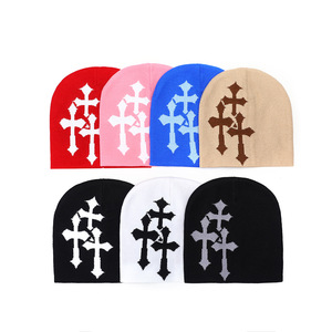 跨境针织帽十字架女提花帽流行嘻哈帽户外运动潮流街头冬季现货