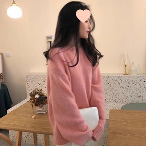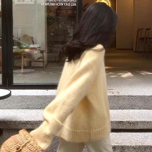 奶黄色马海毛套头毛衣女秋冬小个子宽松慵懒风针织衫加厚圆领上衣
