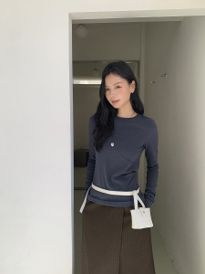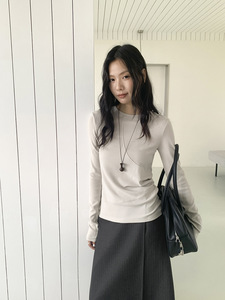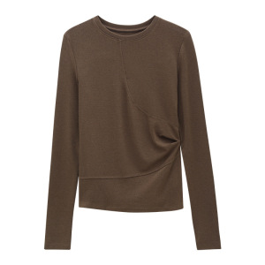 广州十三行2025秋韩风圆领弧形褶皱细腻保暖修身显瘦打底衫03133