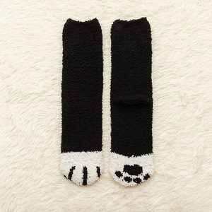 拽不掉毛猫爪袜秋冬保暖加厚珊瑚绒睡眠袜女士中筒卡通毛绒月子袜