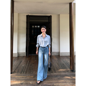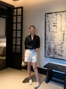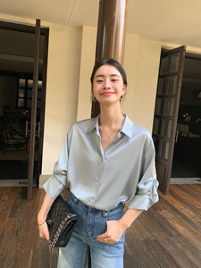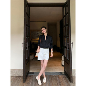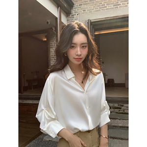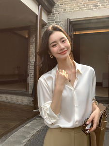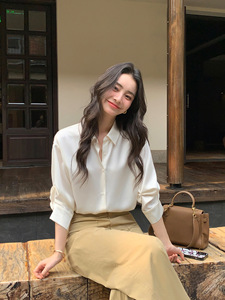 pusumede轻奢高级感醋酸衬衫女绸缎光泽感宽松七分袖气质通勤上衣