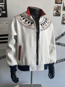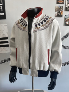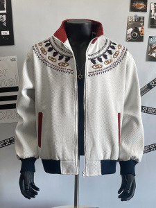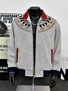 民族风刺绣撞色设计感立领夹克男款秋季费尔岛针织衫开衫外套上衣