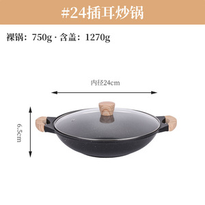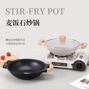家用厨房木柄双耳汤锅麦饭石不粘锅商用鱼头焖锅通用电磁炉炒菜锅