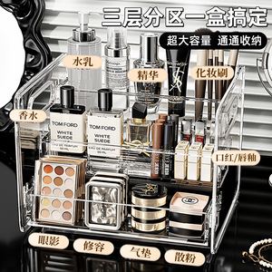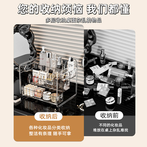 化妆品收纳盒桌面亚克力透明斜口收纳筐梳妆台口红香水面膜置物架