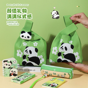 熊猫文具伴手礼奖励小学生班级小礼品创意针织手提袋学习用品大全