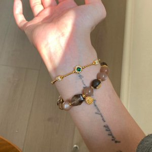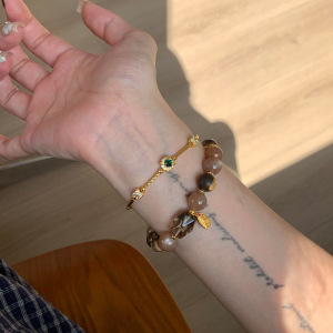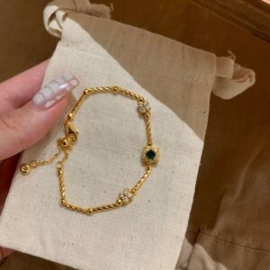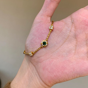 S925纯银草绿糖塔四叶花手链女中古风复古轻奢老钱小红书爆款手环