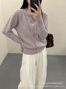 琪镌绘制秋季款圆领毛衣针织开衫外套女时尚女外搭宽松上衣69015