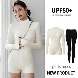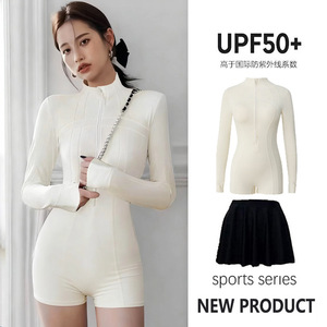 尾波冲浪高领泳衣女长袖长裤专业防晒UPF50+连体速干潜水服水母衣
