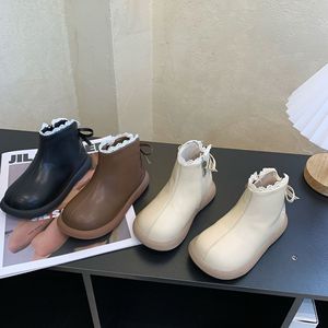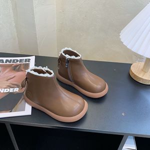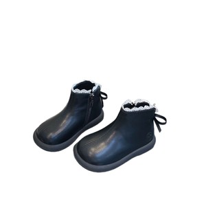 女宝宝短靴子英伦风儿童蕾丝花边小皮鞋侧拉链舒适短靴公主马丁靴
