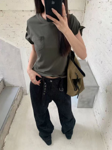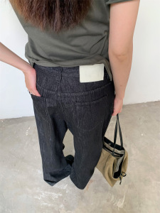 誉一新款2025秋季美式假腰带牛仔裤女复古原牛色直筒长裤女hc1368