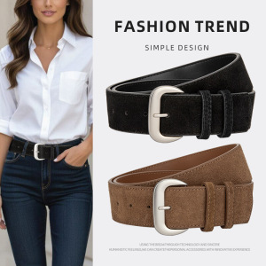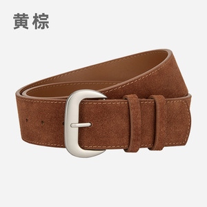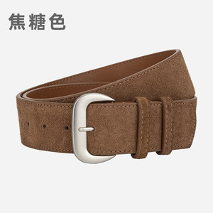 复古磨砂绒面美拉德风真皮宽腰带女装饰连衣裙裤带收腰配饰皮带女